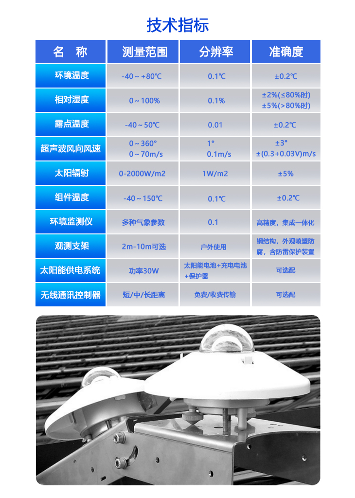 本產(chǎn)品是針對(duì)光伏發(fā)電站研發(fā)生產(chǎn)的一款最新型一體化光伏環(huán)境監(jiān)測(cè)儀,該設(shè)備采用新型一體化結(jié)構(gòu)設(shè)計(jì),測(cè)量精度高,安裝使用方便,可采集多種要素:含太陽輻射(水平/斜面)、溫度、濕度、風(fēng)速、風(fēng)向、大氣壓力、背板溫度等要素,要素可按需定制。