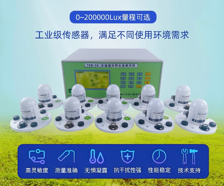 TRM-DG1型多通道光照度監(jiān)測(cè)系統(tǒng)是一種用于測(cè)量光照強(qiáng)度的專業(yè)儀器,能夠幫助我們了解和掌控各種環(huán)境中的光照條件。多通道光照度監(jiān)測(cè)系統(tǒng)由多臺(tái)光照度傳感器和數(shù)據(jù)記錄儀組成。光照度傳感器采用對(duì)弱光也有較高靈敏度的硅蘭光伏探測(cè)器作為感光元件,并將捕捉到的光信號(hào)轉(zhuǎn)換為電信號(hào),電信號(hào)最終被多通道光照度監(jiān)測(cè)記錄儀放大、優(yōu)化后轉(zhuǎn)換為光照度數(shù)據(jù),記錄儀最多可連接32個(gè)通道,實(shí)現(xiàn)多個(gè)不同位置的光照度同時(shí)監(jiān)測(cè),非常適合于需要全面了解光照分布的場(chǎng)景。