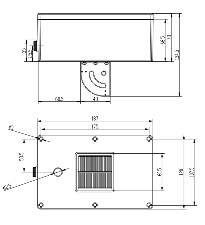 太陽能電池片嵌入在醋酸乙烯酯中,層疊的電池集成到鋁涂層的小盒中。因此傳感器的結(jié)構(gòu)與標(biāo)準(zhǔn)的光伏組件模塊十分相似。線纜的接口是一個IP67 的防水接頭。安裝掛件角度可調(diào),使用時調(diào)節(jié)到與光伏組件角度一致即可。
