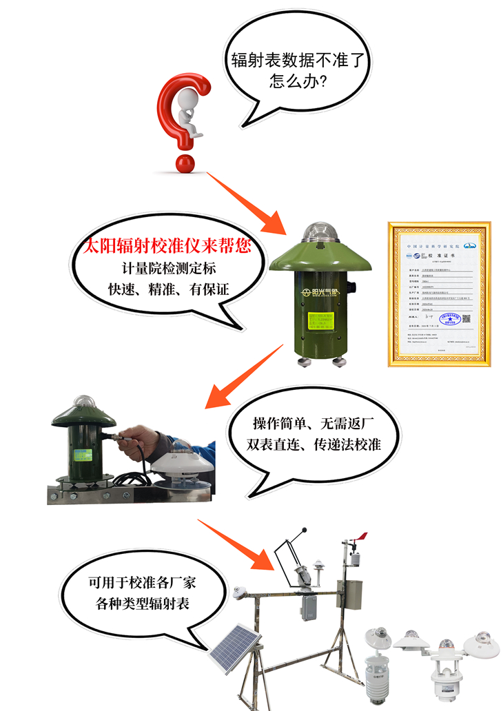在光伏電站監(jiān)測(cè)系統(tǒng)中太陽(yáng)輻射傳感器發(fā)揮重要作用, 精確地實(shí)測(cè)數(shù)據(jù)和累計(jì)數(shù)據(jù), 是跟蹤、評(píng)估和控制光伏電站性能參數(shù)的關(guān)鍵。因此太陽(yáng)輻射傳感器的準(zhǔn)確與否至關(guān)重要。當(dāng)現(xiàn)場(chǎng)的太陽(yáng)輻射傳感器數(shù)值出現(xiàn)偏差時(shí),很多場(chǎng)站不能及時(shí)拆卸返廠,由此TBQ-2WX太陽(yáng)輻射校準(zhǔn)儀應(yīng)運(yùn)而生。